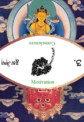 Sans les voiles de l'ignorance et de la discrimination binaire, nous aurions pu jouir en toute intelligence des six consciences "sensorielles" (sct. vijnana, tib. nam-shé) qui ont pour seule aptitude de nous faire savoir les aspects (sct. vijnaptimatra, tib. nam-par rik tsam-nyi) que prennent les apparences phénoménales selon les causes et circonstances. Mais voilà, condtionnées par ces deux "voiles à la science" (sct. jnanavarana, tib. shé drib), les six consciences (sct. vijnana, tib. nam-shé) transportent avec elles les tendances latentes précédemment inoculées dans les facteurs mentaux et qui vont s'engranger sur un mode subliminal en attendant qu'un stimulus fasse passer une tendance du mode latent au mode patent. Ce fonctionnement à donner le concept d'alaya-vijnana que l'on traduit par conscience-base-toute qui, surchargée d'élaborations imaginaires, se retrouve tel un Janus karmique entre l'imprégnation passée qui deviendra cause ("conscience causale, sct.hetukala-vijnana) et la prégnation d'un futur effet ("conscience résultante").