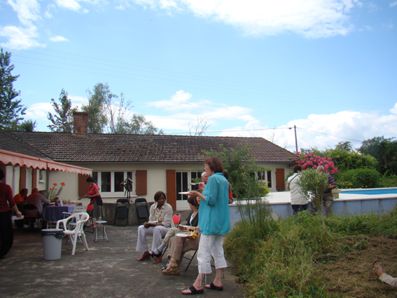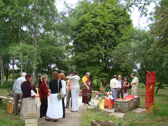 Durant la cérémonie, Lama Shérab a disposé un vase consacré au centre de la fondation stoupa