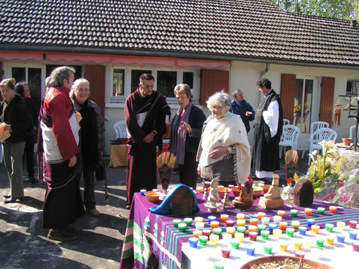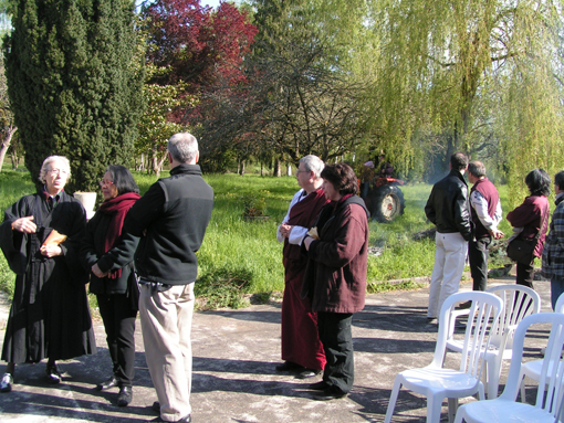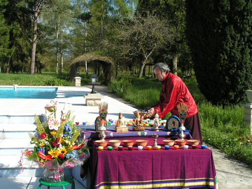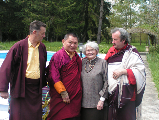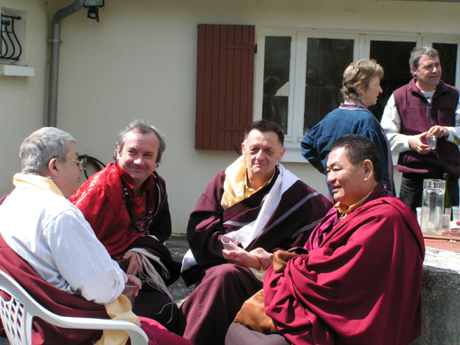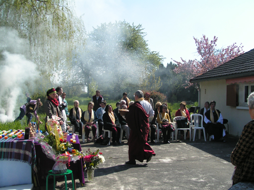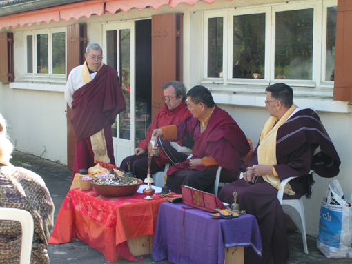 Le vénérable Lama Shérab Dorjé nous a fait l'honneur d'accepter notre invitation pour la consécration de la propriété. Jacqueline Donadieu venait tout juste de s'installer. Des pratiquants de la tradition Zen étaient présents pour cette cérémonie de Rio Sang Tcheu.