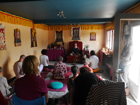 Le 10 février :Après la cérémonie d'offrande au feu, nous avons repris les vœux de refuge et de bodhisattva pour finir par la pratique d'Avalokita.